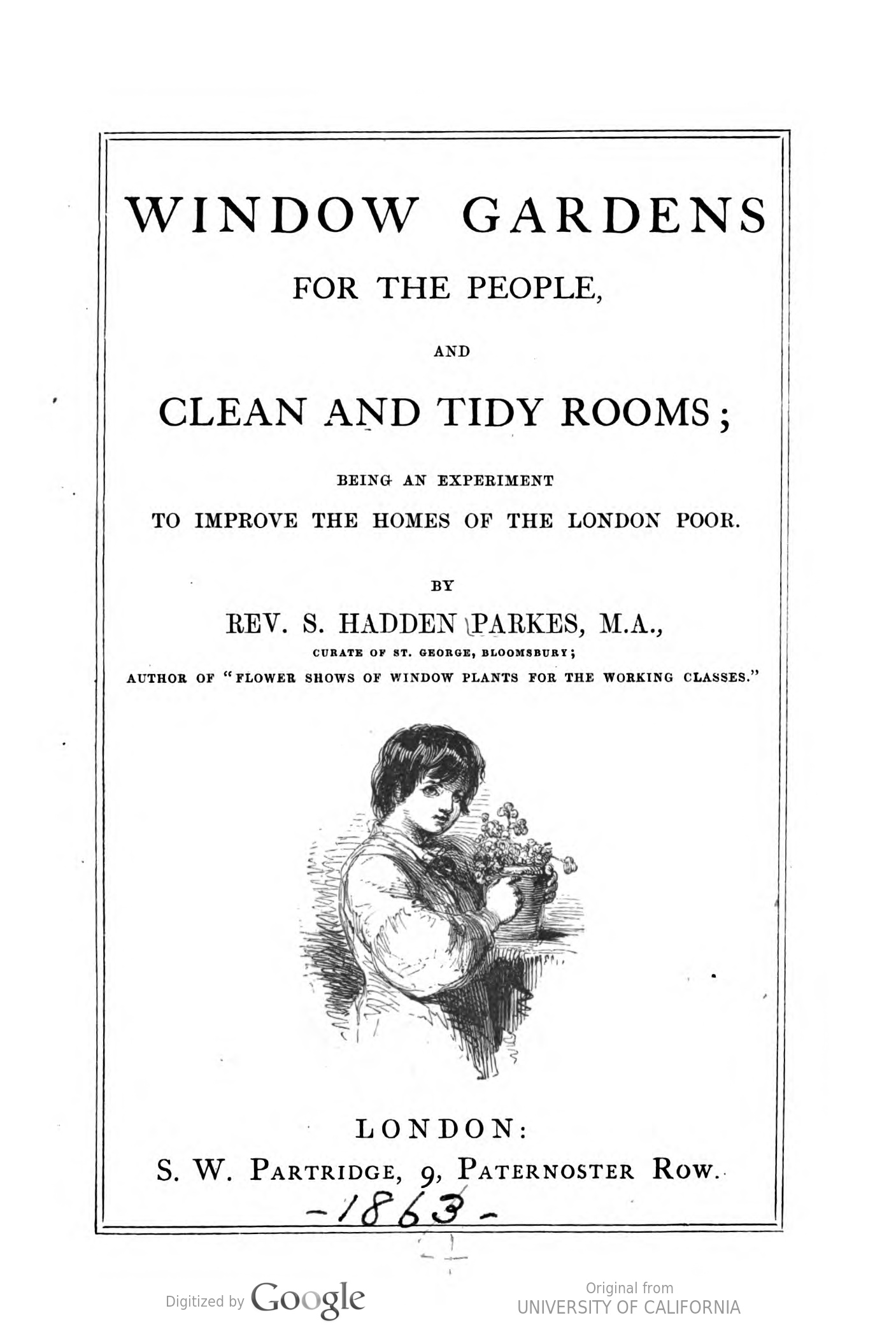 Image credits (top to bottom, right to left): Cover of 'Window Gardens for the People' (1864), by Samuel H. Parkes (CC0); illustration from the French magazine