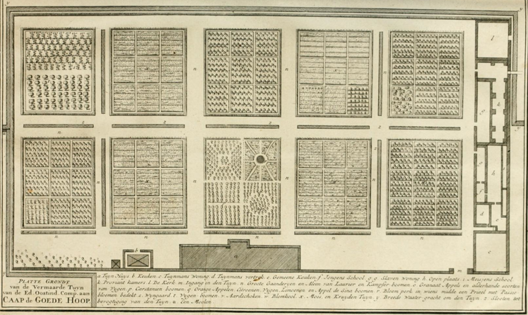 Image credits (top to bottom): The Botanical Gardens of Calcutta ca. 1850, developed by the British Empire, (CC0). Map of the Dutch Company Gardens in Cape Town, 1727 (CC0).